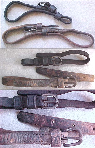 buckles. The longer set is a matched pair, with brass