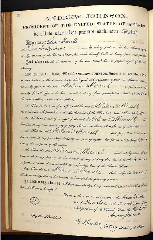 the standard pardon (shown below) by President Andrew