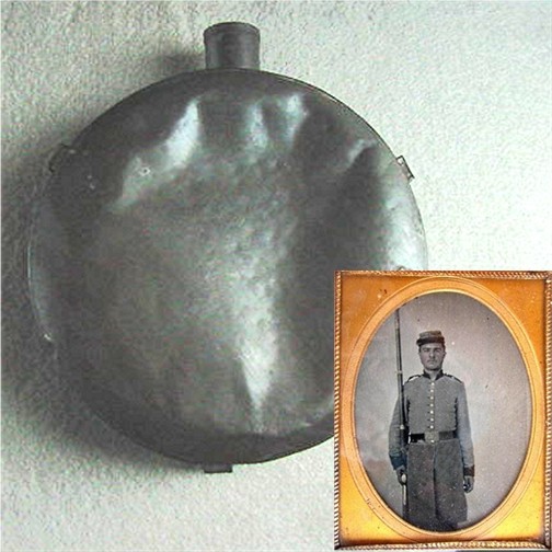 IDENTIFIED CONFEDERATE TIN DRUM CANTEEN –