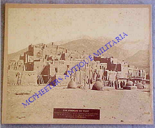 This cabinet card, measuring 9 3/8” by 7 ˝” is in excellent condition with no damage or fading to the image and the card is in full form with no damage to the edges.  A very special view of the Taos Pueblo, it would be interesting to obtain a current photograph taken from the same angle to compare the differences of almost 140 years.  (0208)  $750