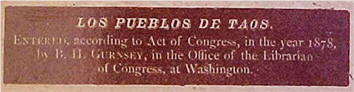 The image bears a imprinted call out which describes the image, and states that the image was entered by an Act of Congress in 1878 in the Office of the Librarian of Congress.  This information would suggest that Congress and the Library were making a concerted effort to capture images of notable historic sites such as the pueblo, before they were over taken by change and the ever increasingly rapid expansion of the western frontier.