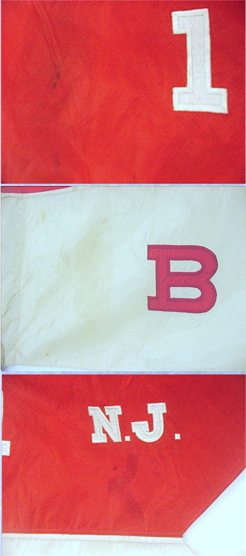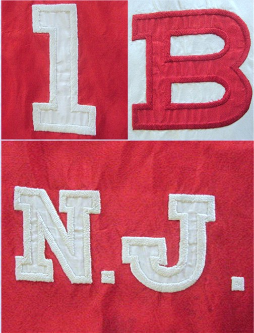“N.J.” is 3 ½” high. The two “button-hole” leather tabs