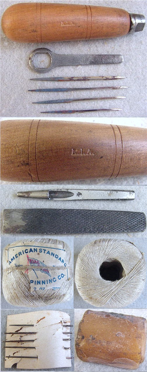 needles, awls, awl handle and wrench, rivet punch, rivet