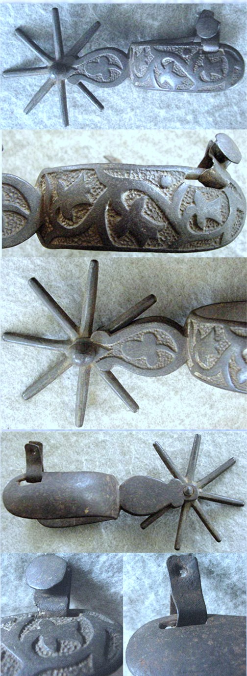 pointed sunburst style rowels measure 3 ½” in diameter.