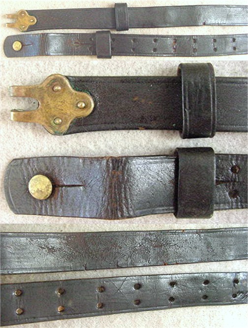both leather keepers and original brass button are
