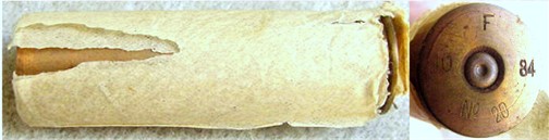 No. 1: A copper cartridge case legibly headstamped “F 10 84 No.