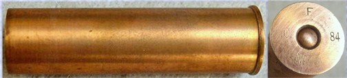 A copper cartridge case legibly headstamped “F 10 84 No.