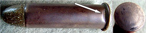 evidenced by the primer crimp immediately above the rim