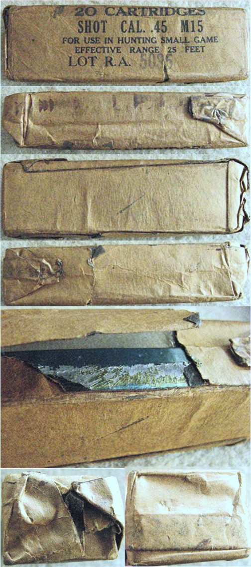 excellent, legible label, “20 CARTRIDGES SHOT CAL. 45