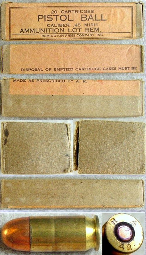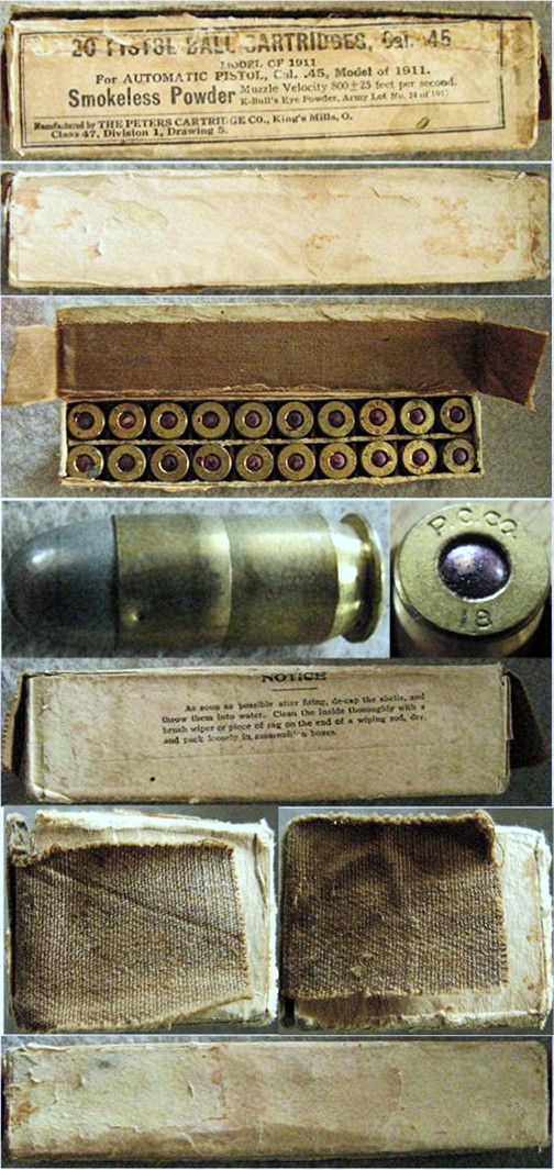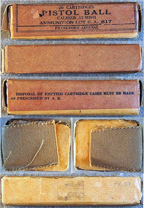 label, “20 Pistol Ball Cartridges, Caliber .45 M1911”.