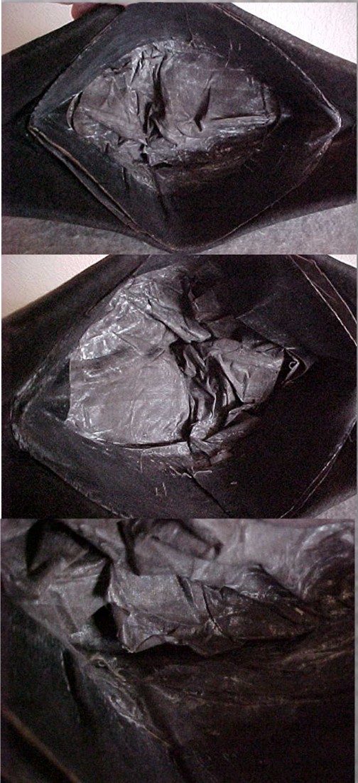 and the heavy black beaver fur felt still retains the