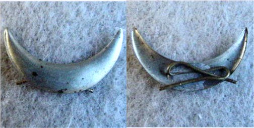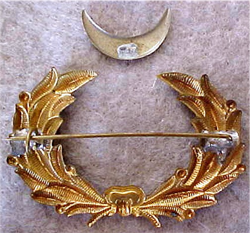 A white metal crescent with a separate brass wreath.