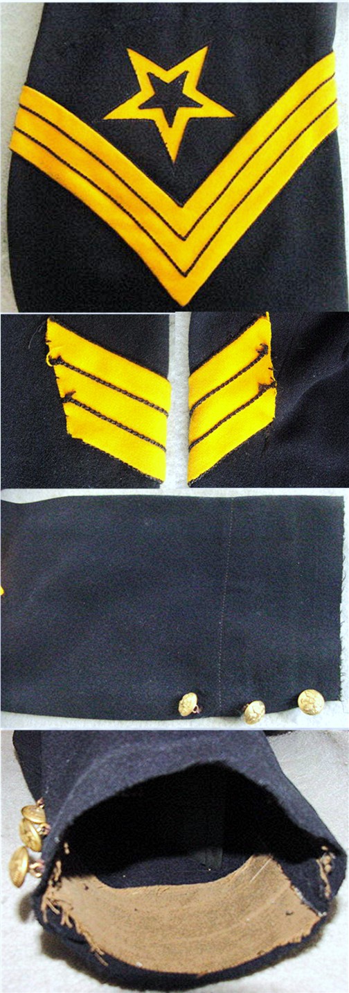The scarce Ordnance Sergeant chevrons are bright and