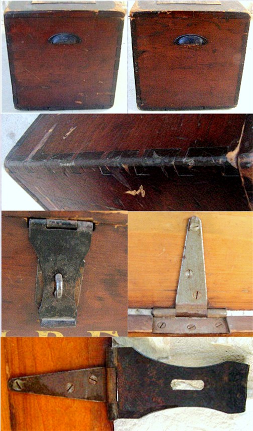 The handles, hinges, and the hasp appear to be original