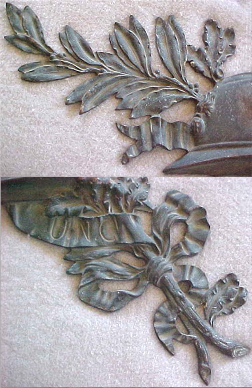foliage bound with a riband bearing the initials “UNC”.