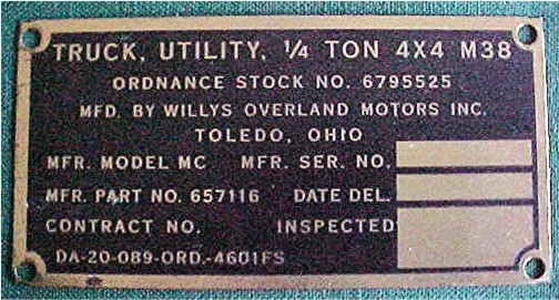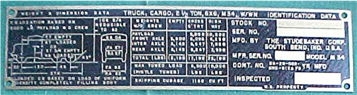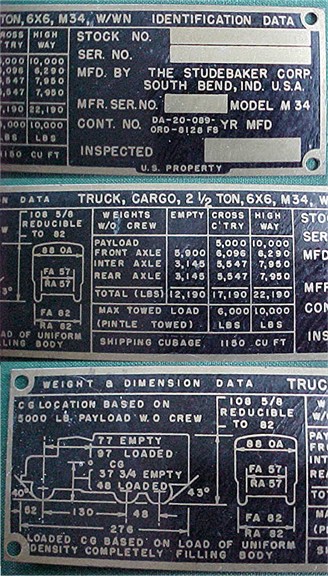US MILITARY VEHICLE DATA PLATES – ORIGINAL “NEW