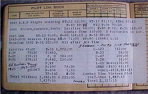 RARE WWII ACE’S FLIGHT LOG BOOK