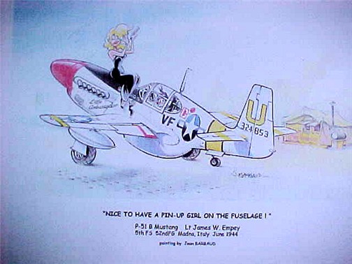 F.G., 15th A.F.” depicting Empey’s P-51,