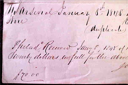 ORIGINAL 1848 ORDNANCE DEPARTMENT RECEIPT FOR THE