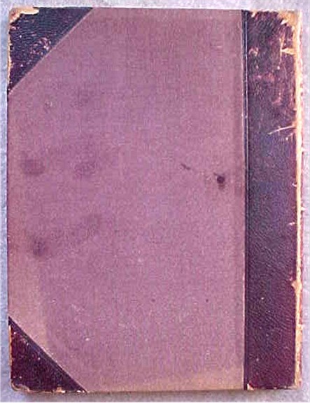 arms”. The volume measures 8 ¾” by 6 ½” and is leather