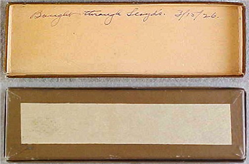inside of the box lid is annotated in hand written ink,