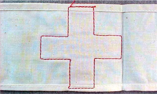 sewn to the white cotton field. The brassard shows no