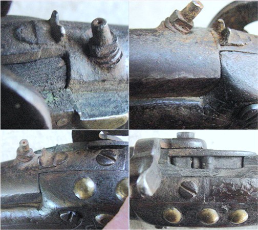 broken away, both on the left flat of the stock. None