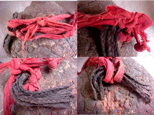 braids and the ends of the cloth strip were then knotted