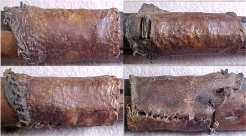 in place with large wrappings of rawhide stitched in