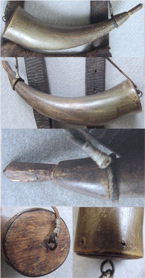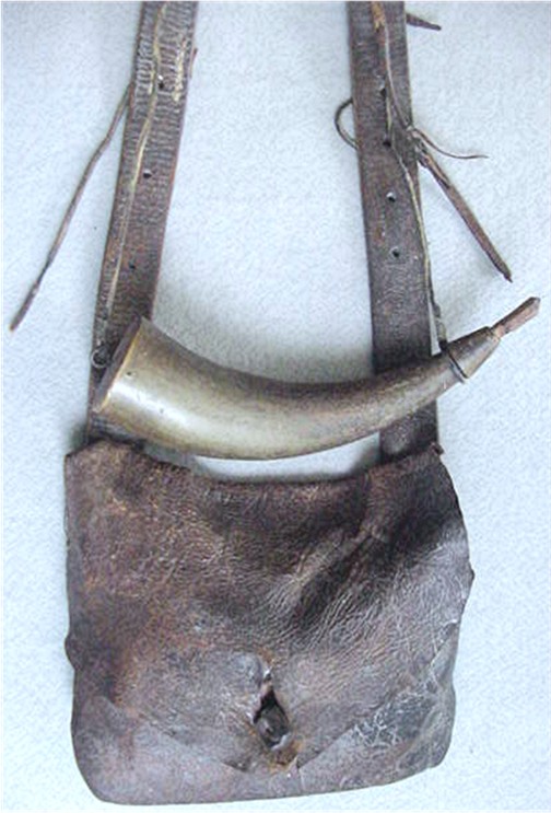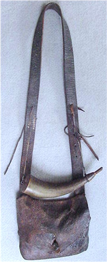 SHOULDER POUCH AND POWDER HORN ORIGINAL SET AS FOUND