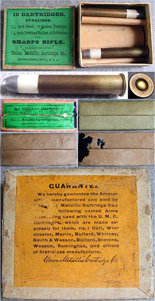 caliber Sharps Rifle ammunition ten round cartridge box.
