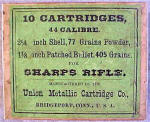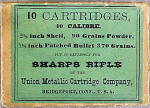 UNION METALLIC CARTRIDGE COMPANY GREEN LABEL BOX OF .44 -2 ¼   INCH CALIBER SHARPS RIFLE CARTRIDGES – 10 ROUND BOX IN EXCELLENT CONDITION  SOLD
