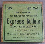 WINCHESTER GREEN LABEL BOX OF 25 .45 CALIBER, 300 GRAIN “EXPRESS BULLETS" – ca. 1880  SOLD