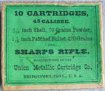 UNION METALLIC CARTRIDGE COMPANY GREEN LABEL BOX OF .45-3 ¼ INCH CALIBER SHARPS RIFLE CARTRIDGES – SCARCE 5 ROUND BOX IN EXCELLENT CONDITION SOLD
