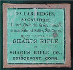 SHARPS RIFLE COMPANY GREEN LABEL BOX FOR 20 .40- 1 11/16” CALIBER, 265 GRAIN PAPER PATCHED CARTRIDGES  –FOR SHARPS RIFLES WITH AN EXCELLENT LABEL  SOLD