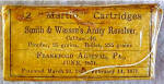 FRANKFORD ARSENAL 44 CALIBER “MARTIN PRIMED” AMMUNITION PACKET FOR THE SMITH & WESSON ARMY REVOLVER – DATED FEBRUARY 1871 – A VERY NICE EARLY PACKET SOLD