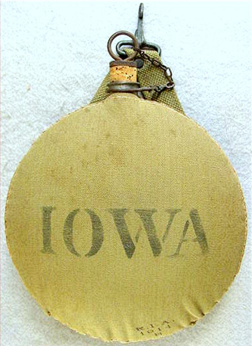 “IOWA”, indicating this canteen was issued to Iowa State